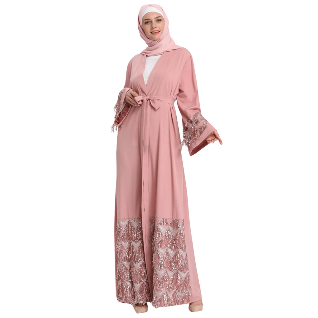 Женское длинное платье с цветочным принтом, халат, открытый кардиган «абайя», мусульманское платье в Дубае