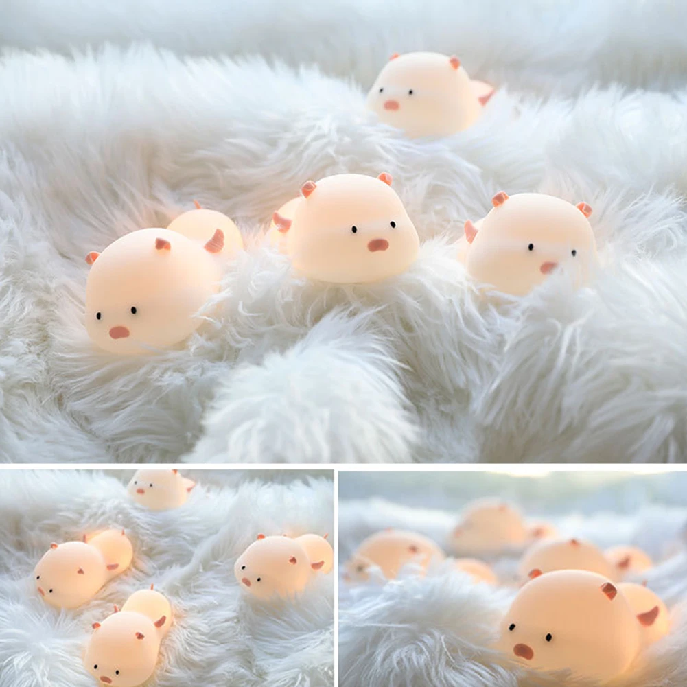 Hinnixy Милая свинья Ночник детская прикроватная LED ГРМ розовый синий красочные USB зарядка свет мягкая Смола магнитная лампа домашний декор