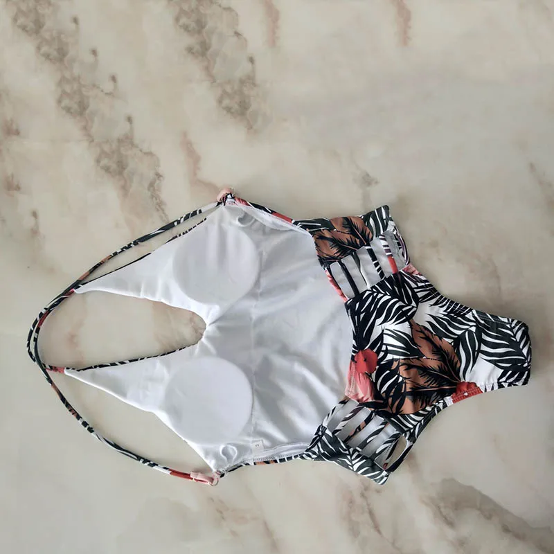 Женский купальник с глубоким v-образным вырезом, бандажный монокини с открытой спиной и принтом Badpak, Цельный купальник, женский купальный костюм, 2019