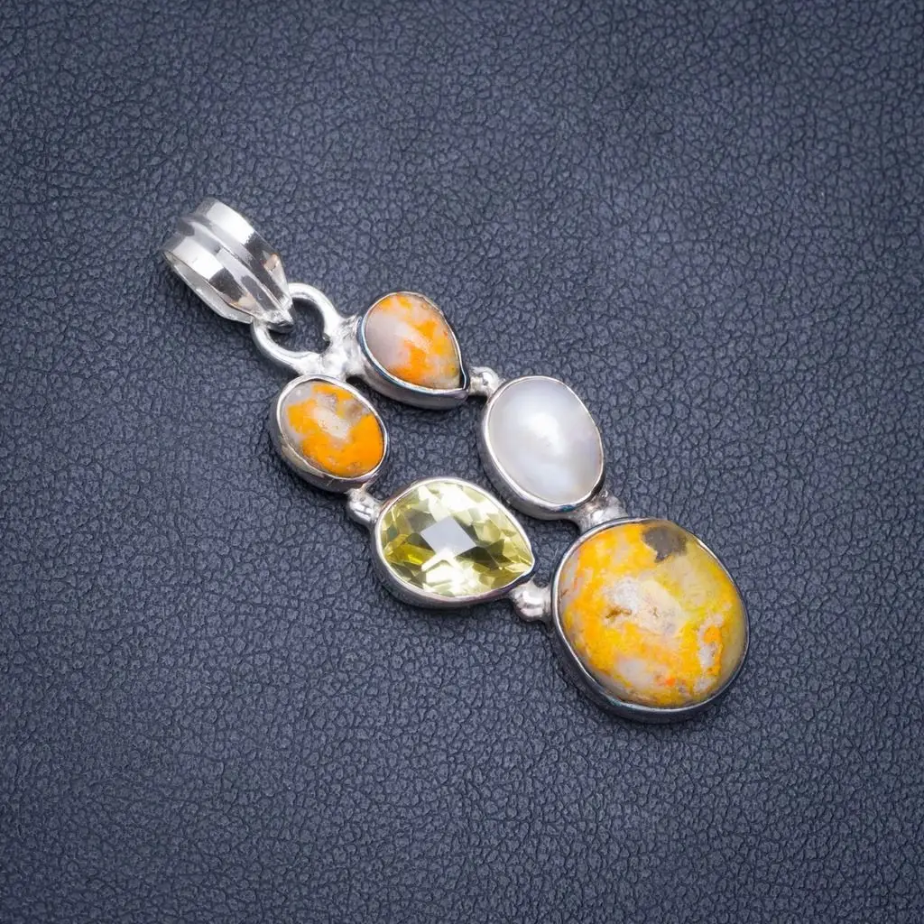 Натуральный Шмель пчелиная яшма, речной жемчуг и цитрин ручной работы уникальный 925 пробы серебряный кулон 1,75 "; A0452