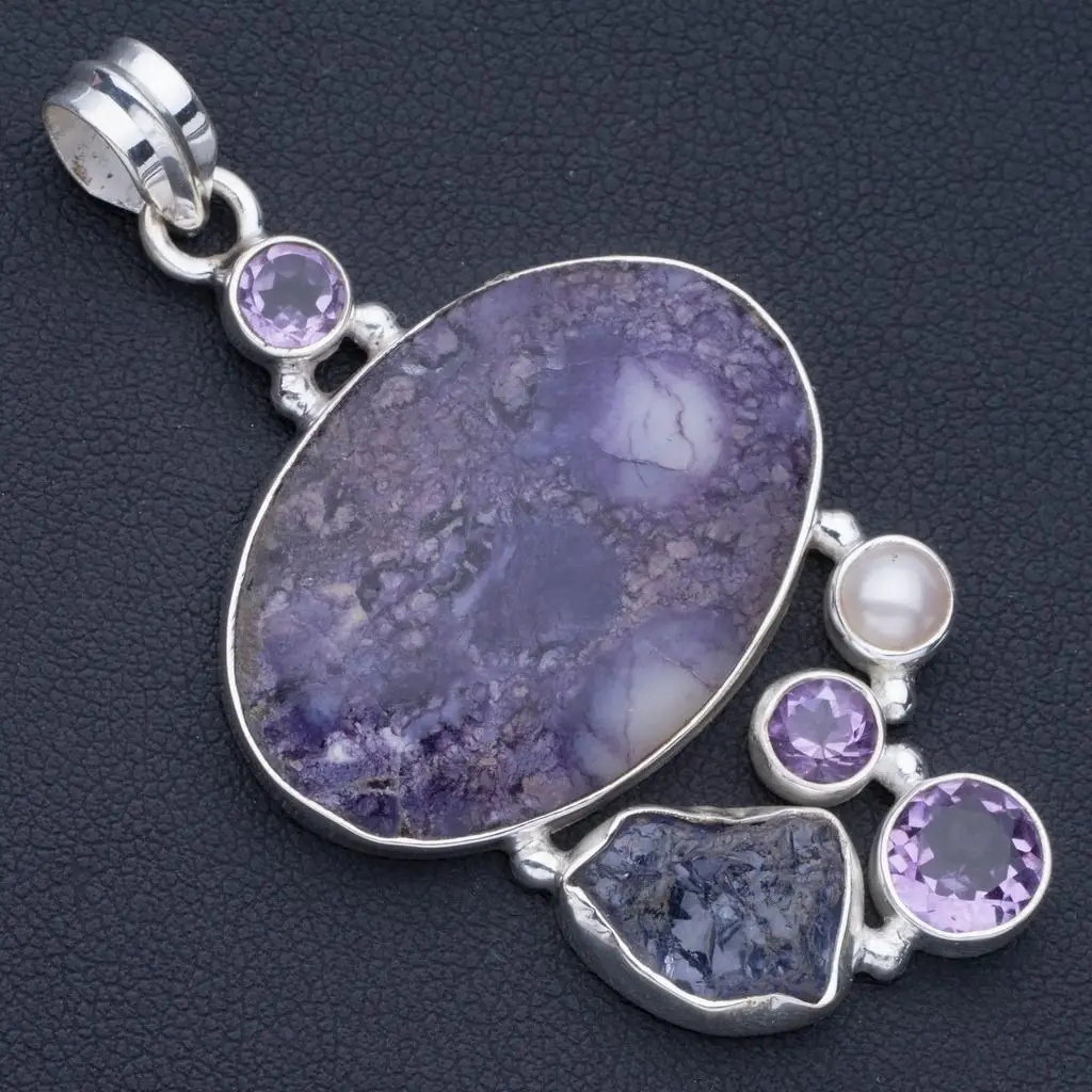 Природный чароит, аметист, кайанит грубой и речной жемчужины 925 стерлингового серебра кулон 2 1/4 "; P0734