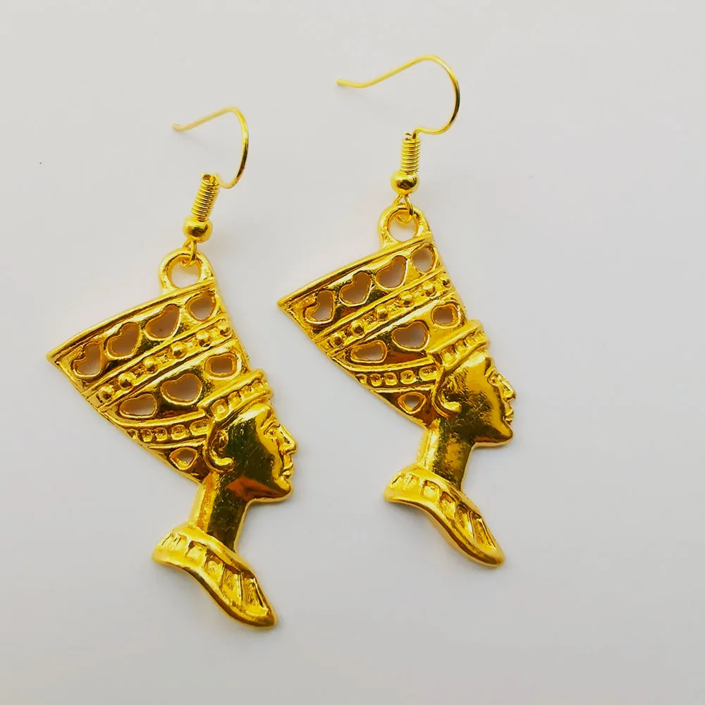 Модные женские ювелирные изделия Дизайнерские висячие серьги золотого египетского королевы Нефертити Висячие серьги для женщин Рождественский подарок Модные Винтажные Ювелирные изделия подарок