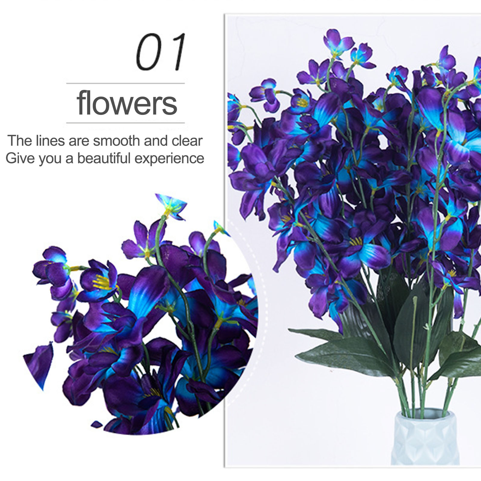 -Благодаря реалистичным характеристикам и яркому цвету искусственный Дельфиниум может дать вам ощущение весны, а затем расслабить после усталости всего дня.