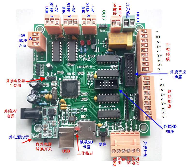 Эта плата управления может храниться на sd-карте без подключения к компьютеру. Компьютер мертвый и может быть выгравирован нормально. Это поговорка «Оффлайн». Про автономную функции Автономный: Плата управления не должна подключаться к компьютеру, но сохраните файл траектории инструмента на sd-карту, нажмите кнопку Пуск на панели управления, плата управления считывает данные с sd-карты, система выполняет обработку с ЧПУ, И избавляется от зависимости от компьютера. Во время автономного процесса вы также можете подключиться к компьютеру, чтобы отобразить состояние пути инструмента, или вы не можете подключиться к компьютеру. На самом деле, вы можете подключить и отсоединить usb-кабель в любое время. Причина в том, что хост-компьютер принимает только данные и отображает данные координат от панели управления и не передает данные. Таким образом, кабель USB подключен и отключен, и статус автономной работы не влияет. Плата управления должна иметь питание. Существует две основные причины использования автономной работы: Во-первых: компьютерная usb-связь легко нарушается, что может привести к прерыванию связи между контрольной платой и компьютером для управления программным обеспечением ПК, что приведет к системному перерыву и потере заготовки. Во-вторых: в то же время стабильная система компьютера также является большой проблемой. Даже если нет проблем с USB общением, компьютер может иметь шанс сбой, что приведет к остановке системы и потере заготовки. С автономной функцией процесс обработки системы не зависит от USB связи, и он не зависит от стабильности компьютера. В Чэнду стабильность системы и тысячи промышленных систем ЧПУ в основном стоят на той же начальной линии, стабильность. Лучше всего