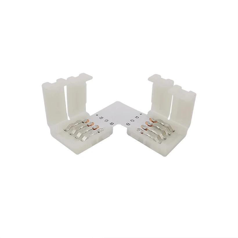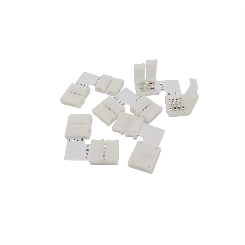 4Pin 10mm RGB L Shape Right Angle 90 Degree Corner Solderless Connecting RGB LED Connector for 5050 LED Strip Light