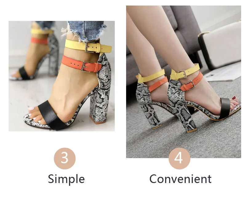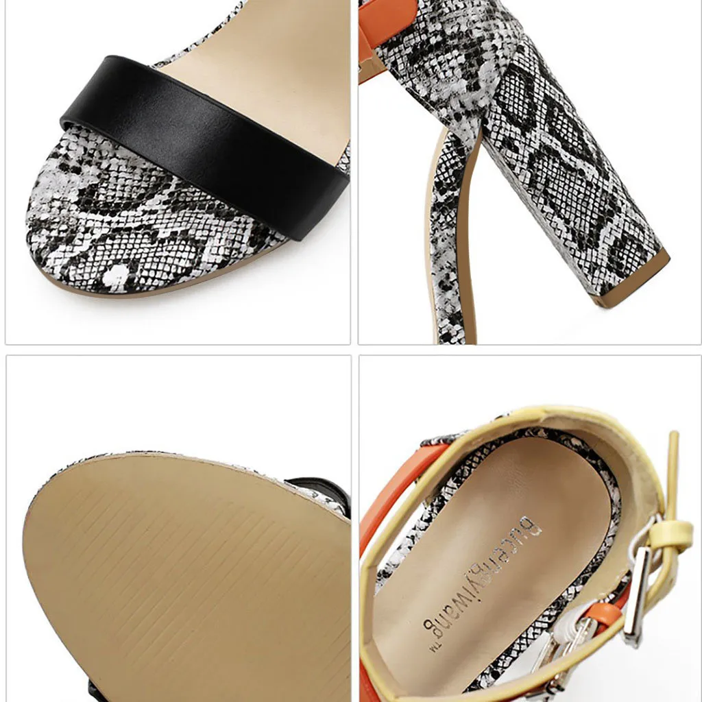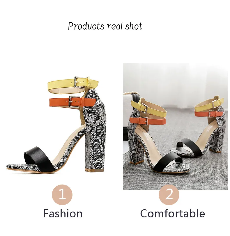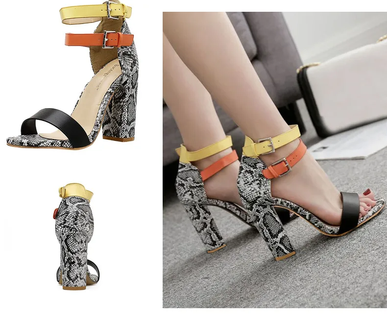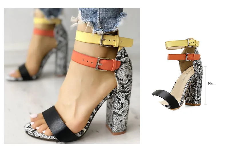 Женские Модные босоножки смешанных цветов на высоком каблуке, с пряжкой, повседневная обувь