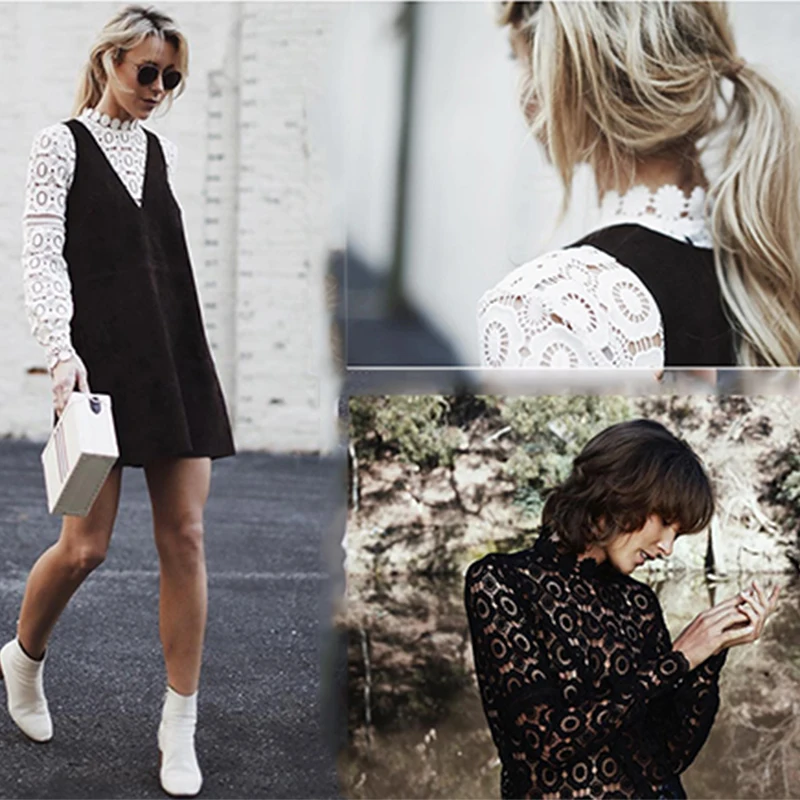 Женская блузка с коротким рукавом белая шифоновая кружевная|Блузки| |
