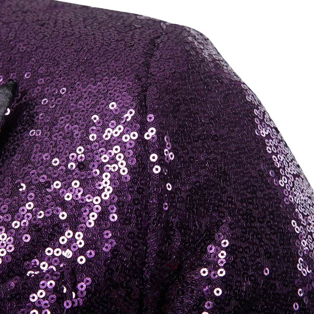 Charm Men's Casual One Button Fit Suit Blazer Coat Jacket Sequin Party Top