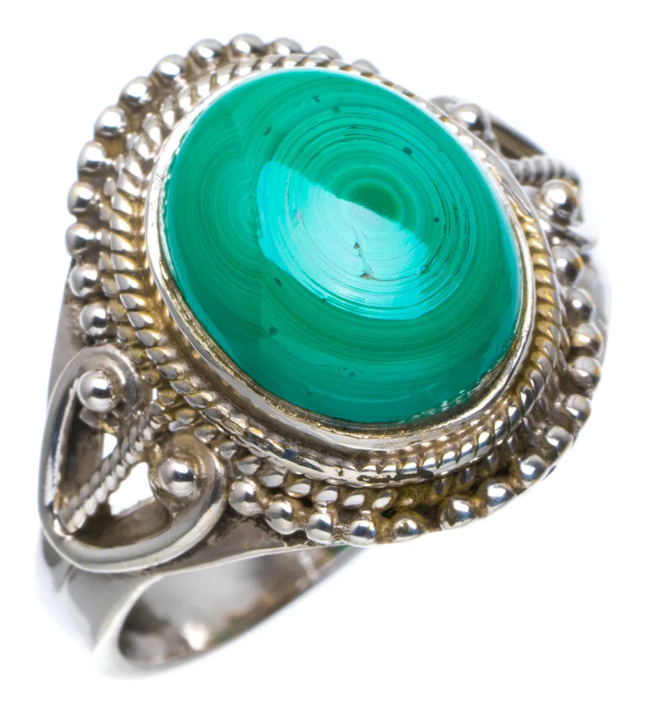 Малахитовые ручной работы, уникальные 925 кольцо из стерлингового серебра бледно-7,5; A4021