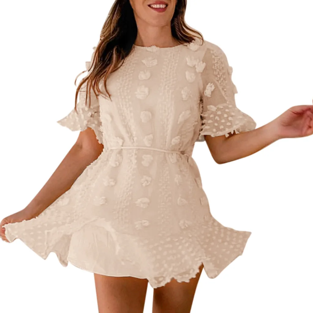 Женское винтажное мини-платье с цветочным кружевом, оборками и коротким рукавом, лето