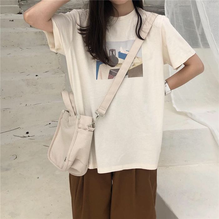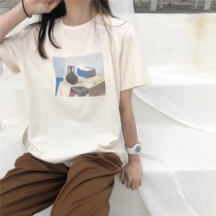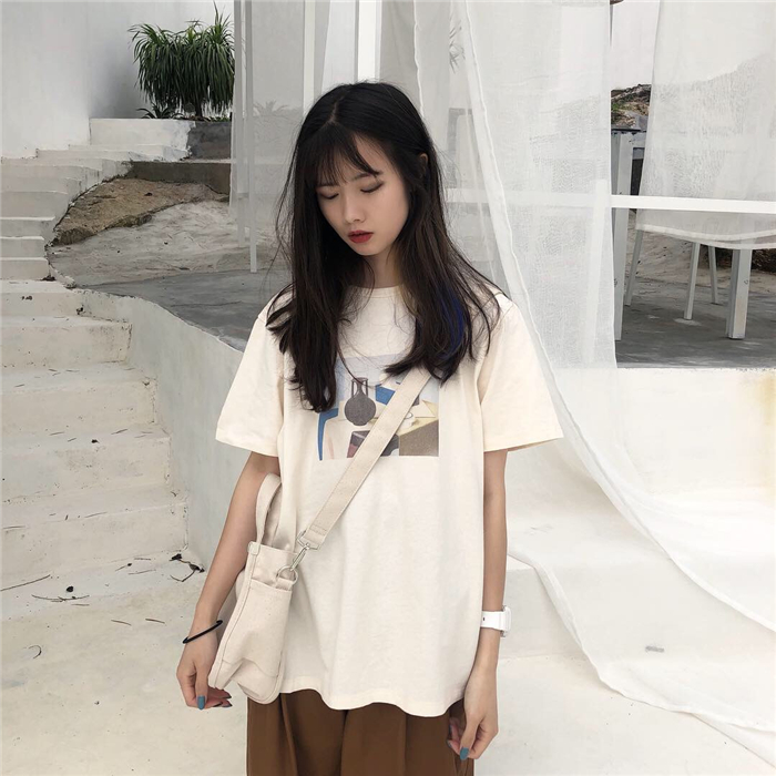 2019 летние свободные топы в Корейском стиле с мультяшным принтом, женские футболки с коротким рукавом, женская футболка