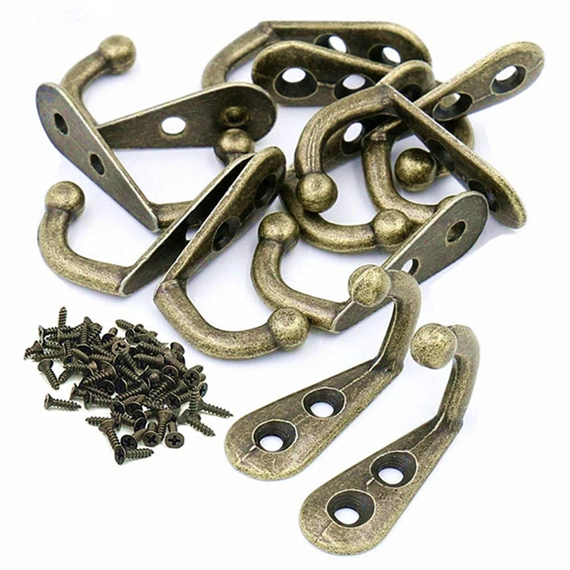50 шт крючок с 100 шт винтом, маленький размер Античная бронзовая дверь настенный крючок вешалка