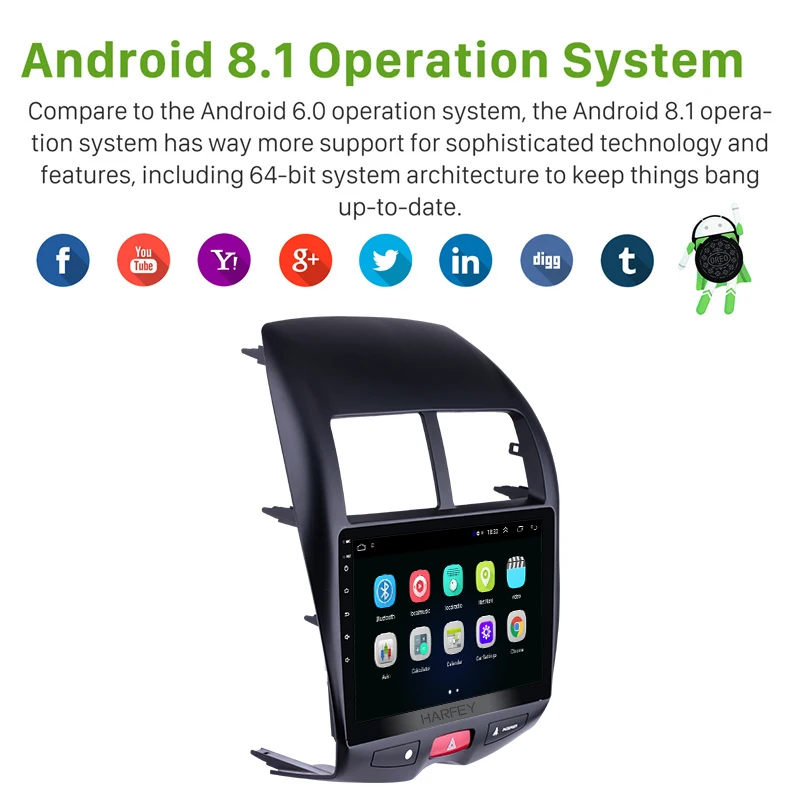 Harfey 10,1 "Android 8,1 автомобильный мультимедийный плеер GPS навигационная системаДля 2010 2011 2012 2013 2014 2015 Mitsubishi ASX Peugeot 4008Автомобильное радио