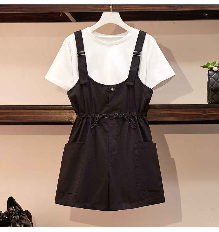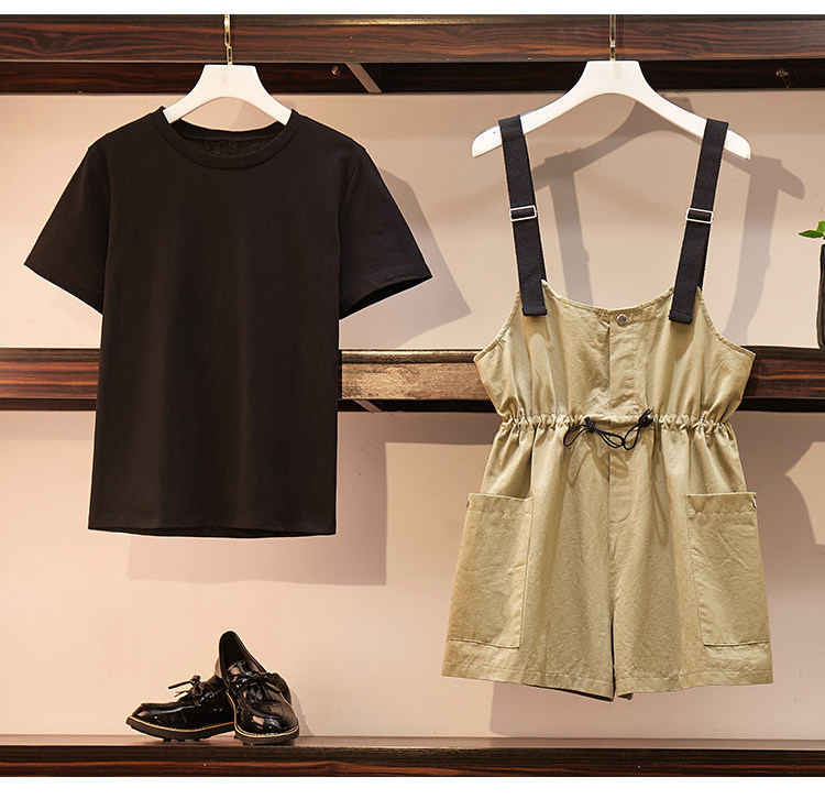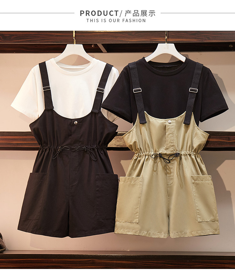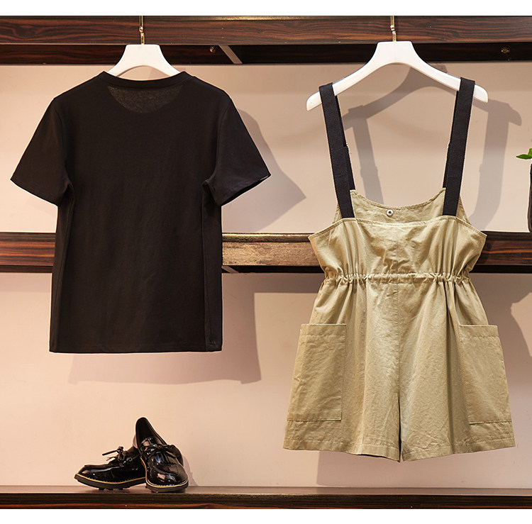 XL, 2XL, 3XL, 4XL, 5XL Женский комплект 2 шт. футболка с коротким рукавом + Свободный комбинезон, короткие комбинезоны, комплект из 2 предметов, комплект женской одежды
