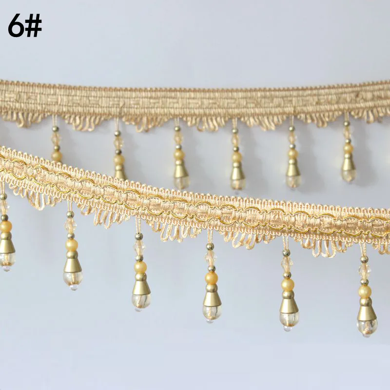 Наименование товара: жемчужное кружево с бисером Ширина: 11 см Материал: полиэстер и искусственный жемчуг Цвета: как на картинке. Посылка: 12 ярдов в партии Использование: Ручная работа для украшения джинсов костюм, одежда в китайском стиле, шитье штор acscessorie.