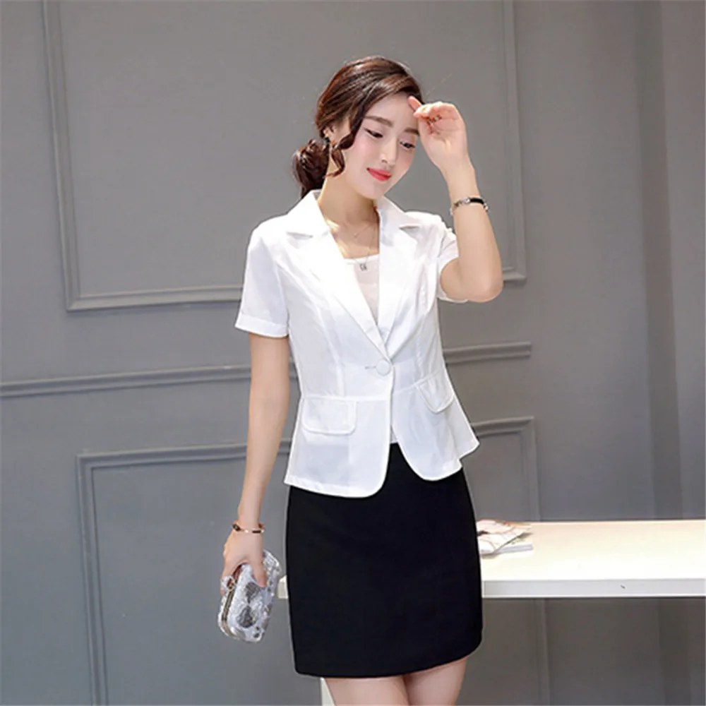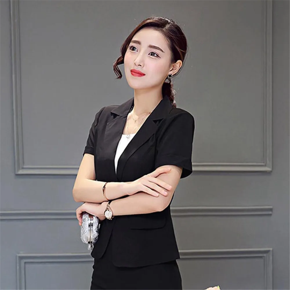 Летний женский Блейзер, однотонный офисный Профессиональный блейзер с короткими рукавами, элегантный женский короткий костюм OK196