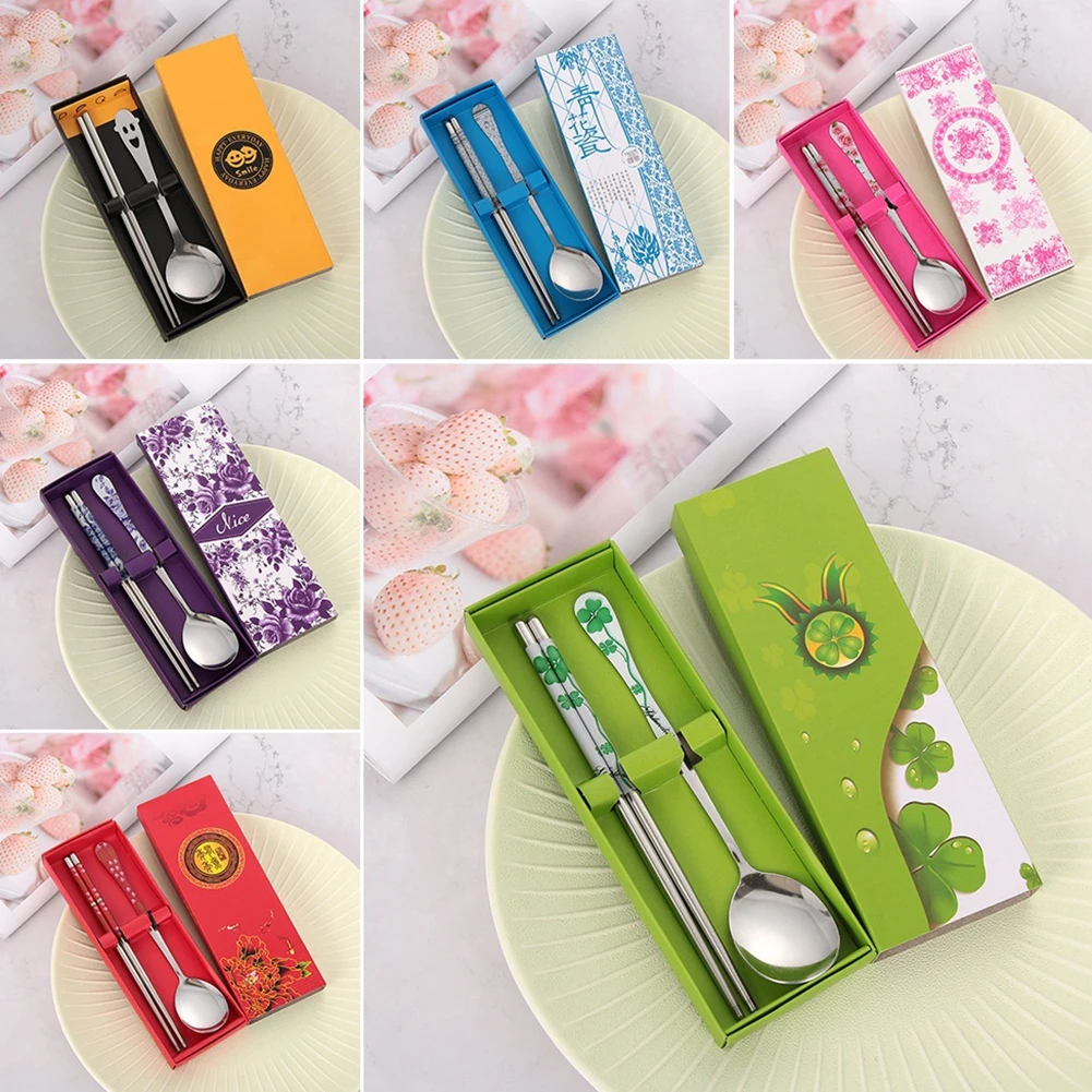 2Pcs Portable Metal Tableware Outdoor Picnic Camping Travel Western Food Chopsticks Spoon Luxury Dinnerware Set Kitchen Tools