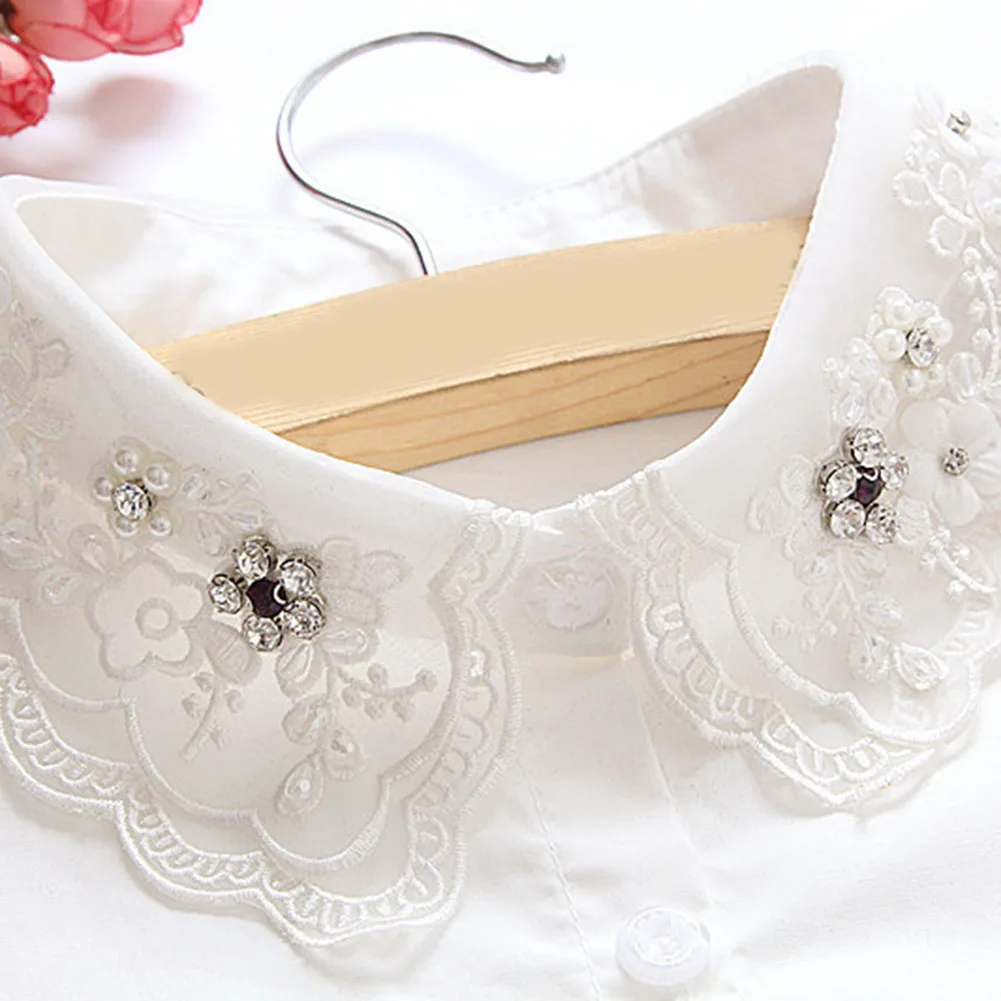 НовинкаЖенская Съемная ложная половинная рубашка, Стильная белая блузка с искусственным воротником, украшенная бусинами и стразами, Женская декоративная рубашка