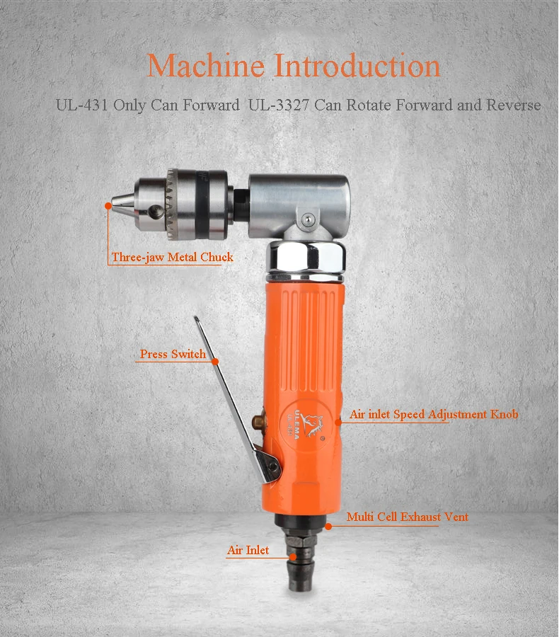 90 градусов 3/8 локоть пневматическая дрель с положительным и отрицательным пистолетом пневматическая дрель воздушная дрель UL-431/UL3327