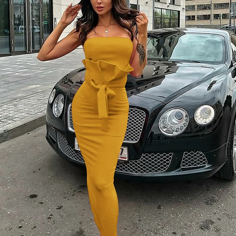 * Описание товара:Женская одежда, летняя сексуальная тонкая,Без бретелек, бант, Коктейльные Вечерние, вечернее платье