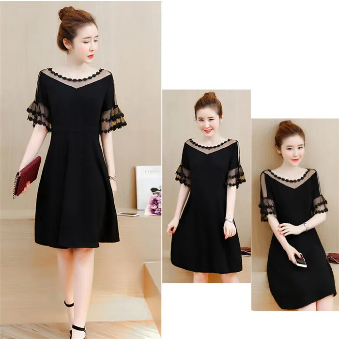 Женское облегающее платье с коротким рукавом, черное газовое платье большого размера, модель WIN899, лето 2019
