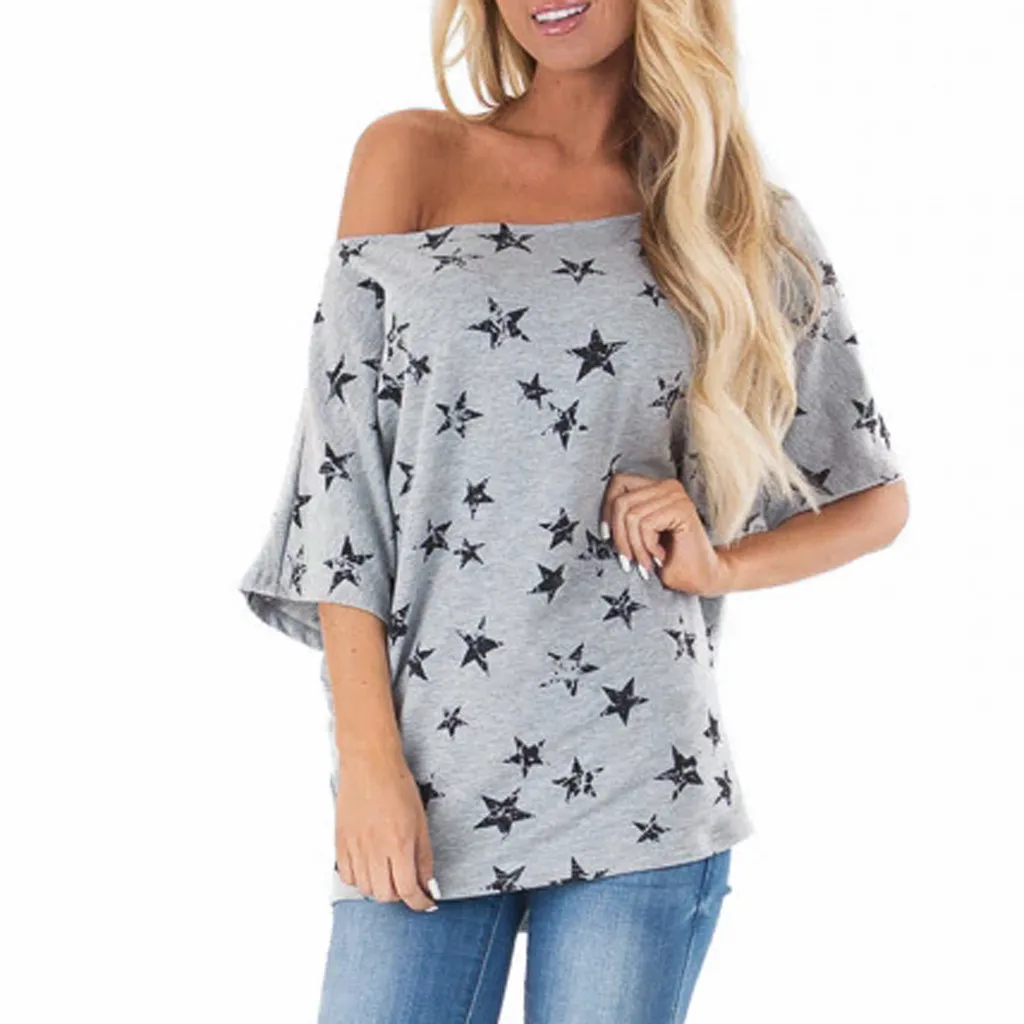 Женская блузка с открытыми плечами и коротким рукавом, с принтом звезд, для песчаного пляжа