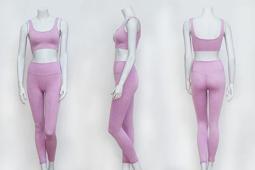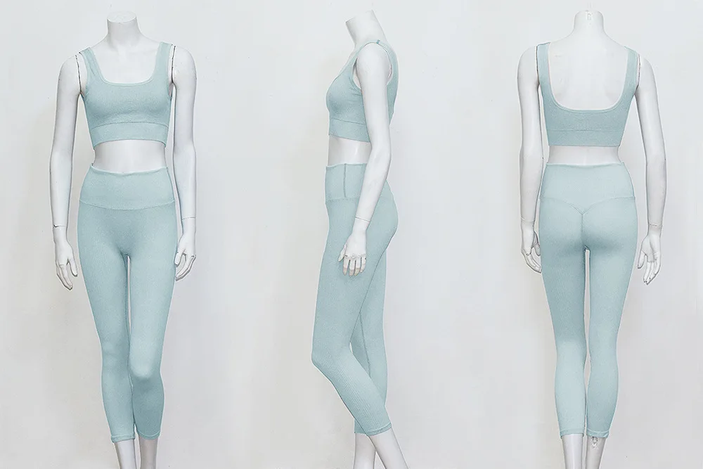 Женский спортивный костюм для фитнеса трикотажный бесшовный топ на бретельках