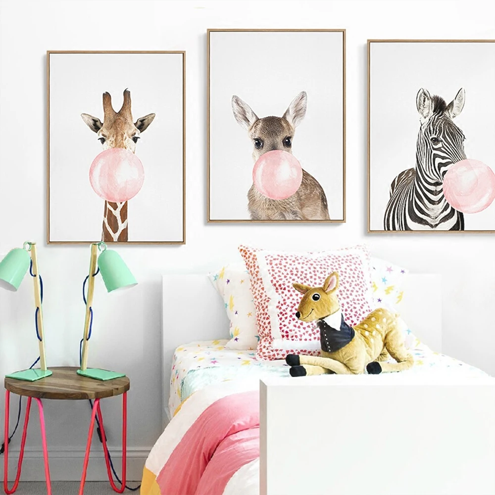 Wall Art Picture Cat Fashion Canvas Pink Girl Princess Poster High-heeled Shoes Flower Pictures for Bedroom Decoration | Дом и сад