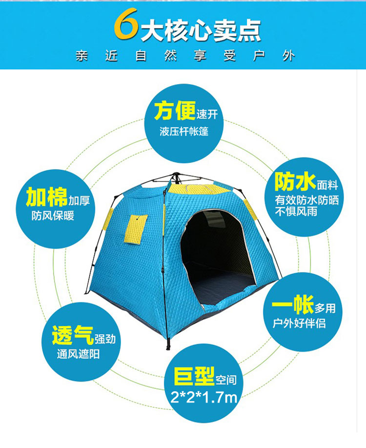 Размер: 200 * 200 * 170 см (выше) Материал: 190T полиэстер с хлопком = теплый и непромокаемый Функция: Подходит для 2-3 человек подледной рыбалки Вес: около 6,35 кг