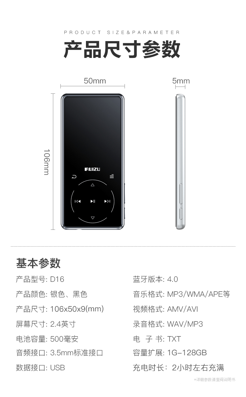 Другие функции:Этот MP3-плеер с функцией Bluetooth, совместим с большинством bluetooth-гарнитур и bluetooth-динамиков (не поддерживает подключение телефона), слушайте музыку так свободно и легко!
