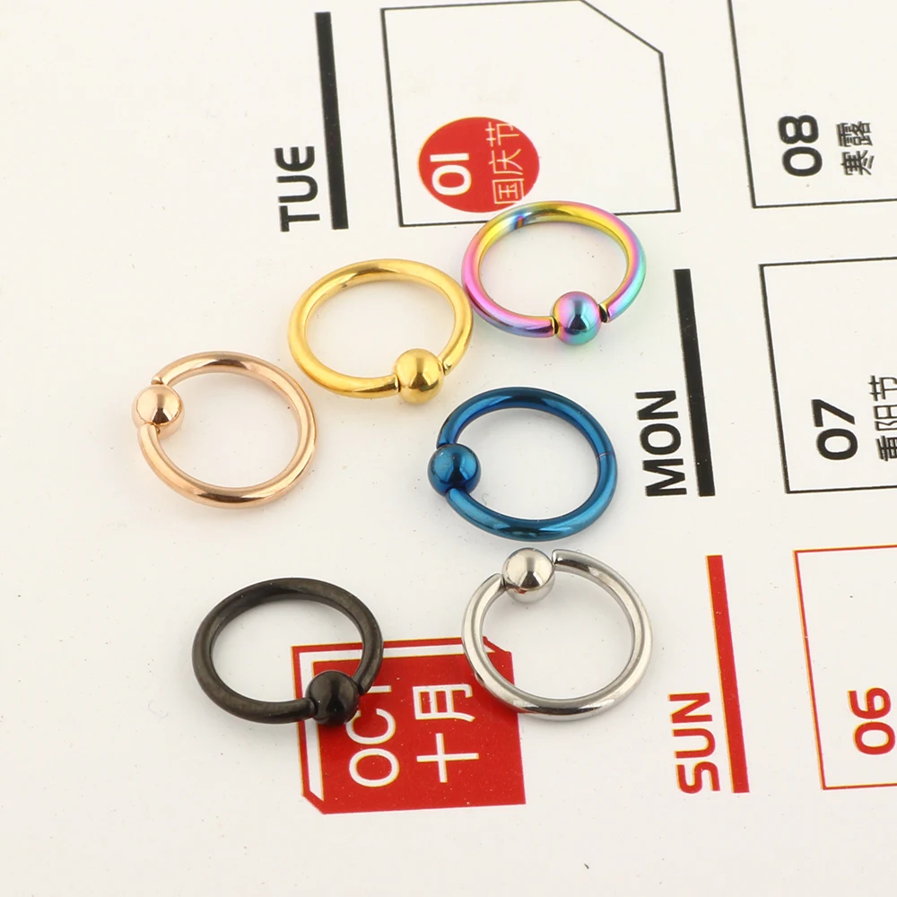 Material:stainless steel Size: 1.2x8x3mm,0.8x8x3mm(the bar thickness is 1.2/0.8mm,the ring diamter is 8mm.the ball diameter is 3mm) Quantity:100pcs/lot ,200pcs/lot,500pcs/lot mix 6 colors Color:silver,black,rainbow,gold,blue,rose gold