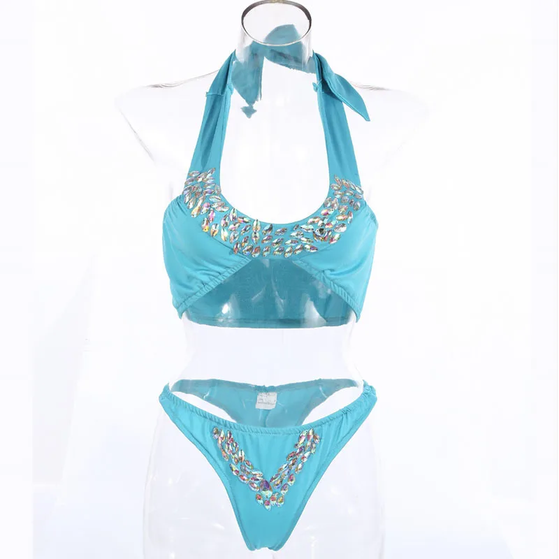 Hirigin, сексуальный комплект бикини с блестками и кристаллами, Холтер, стиль, купальник, бандаж, купальник, пуш-ап, мягкий летний купальный костюм, пляжная одежда