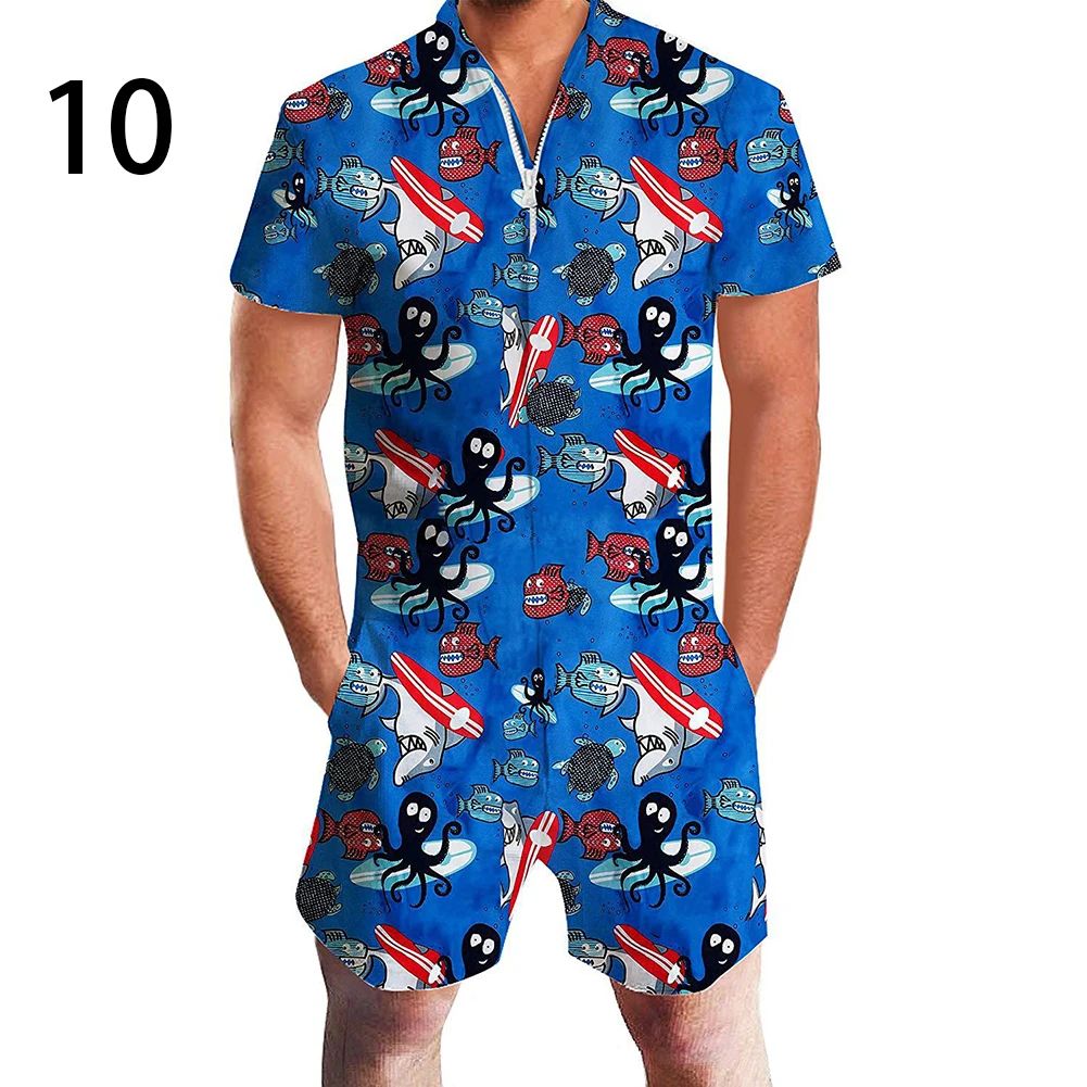 Летний мужской комбинезон на молнии с коротким рукавом с принтом Фламинго ананаса леопарда