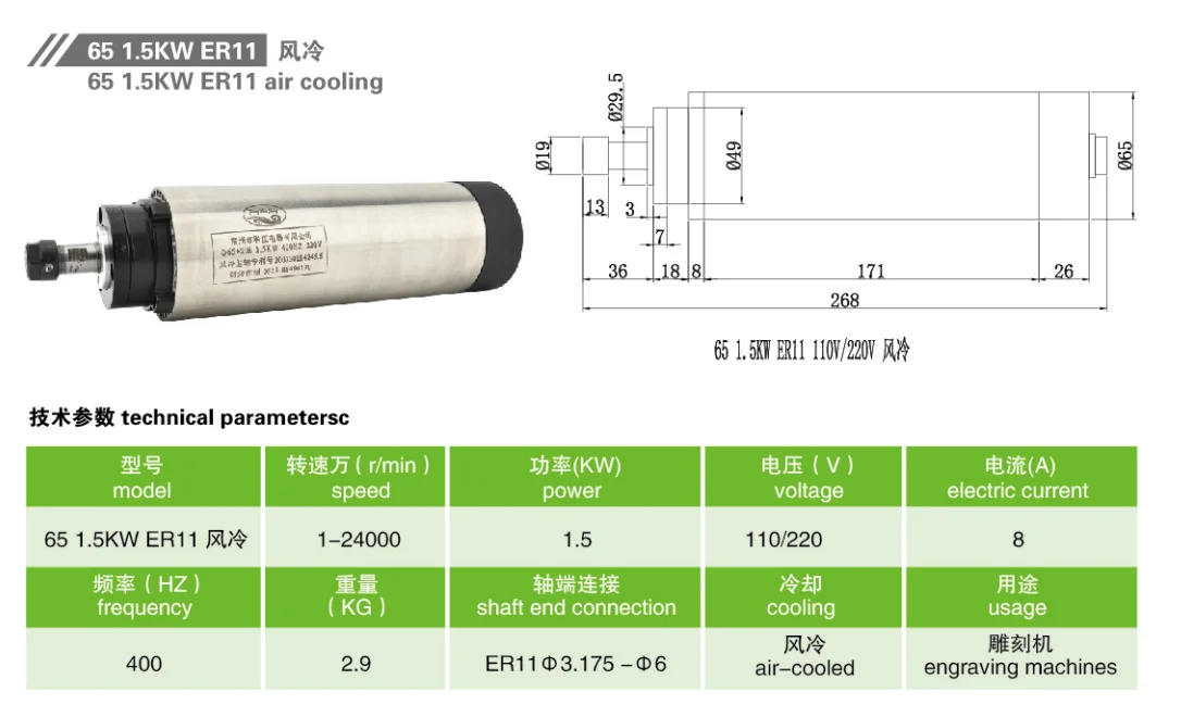 Автоматическая смена инструмента шпинделя 6KW 380V УВД ЧПУ двигатель с воздушным