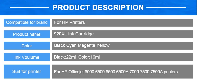 6500A 7000 7500 7500A Printer Cartridge For HP920
