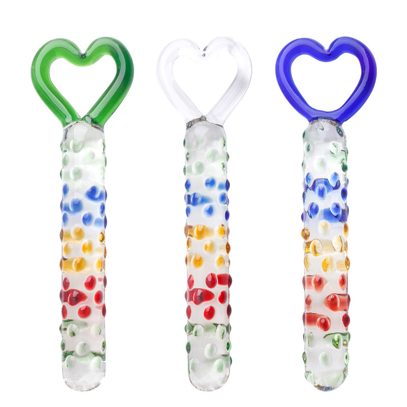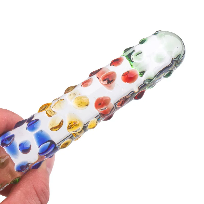 Female Adult Sex Supplies Crystal Glass Penis Masturbation Device Backyard Anal Plug Simulation with Spots