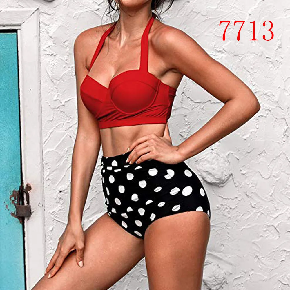 Женский купальник бикини с высокой талией, Женский комплект бикини в стиле ретро
