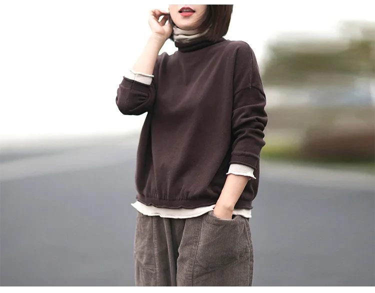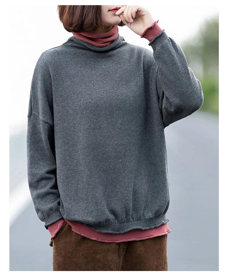 Свитер женский с высоким воротником утепленный мешковатый в Корейском стиле