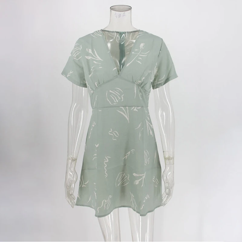 * Описание товара: Повседневный, Сексуальный, пляжный, v-образный вырез, короткий рукав, приталенный крой, а-силуэт