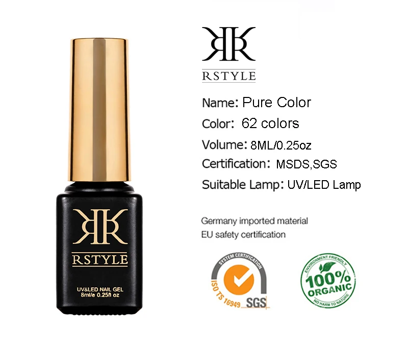 Лак для ногтей rstyle лак для ногтей чистый цвет 62 цвета в наличии черная бутылка 8 мл художественные украшения УФ-гель лак для ногтей долговечный Макарон Гель-лак