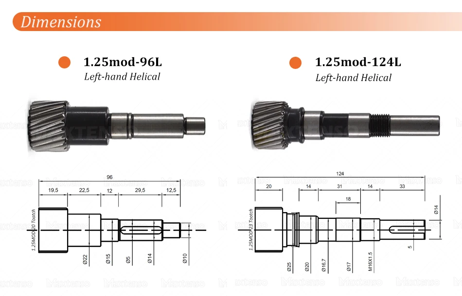 Для серии 1.25MOD, Обычный запас 1400 мм или 670 мм зубчатая рейка в правой винтовой, 124 мм или 96 мм Шестерня вала в левой винтовой, коробка передач в левой винтовой.