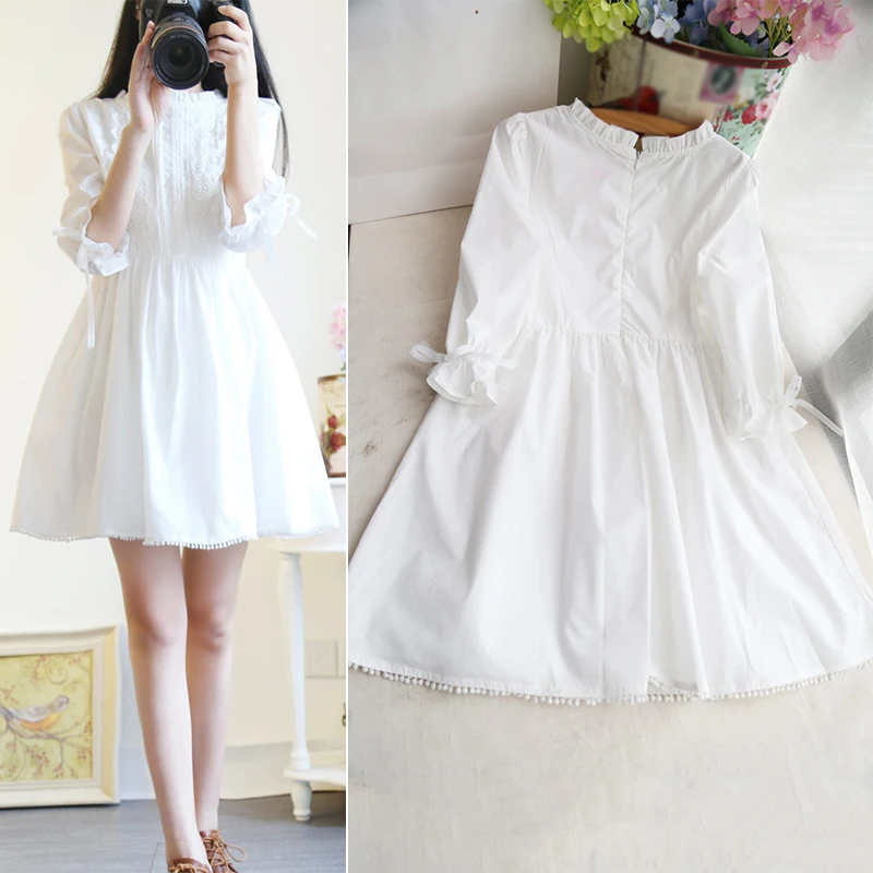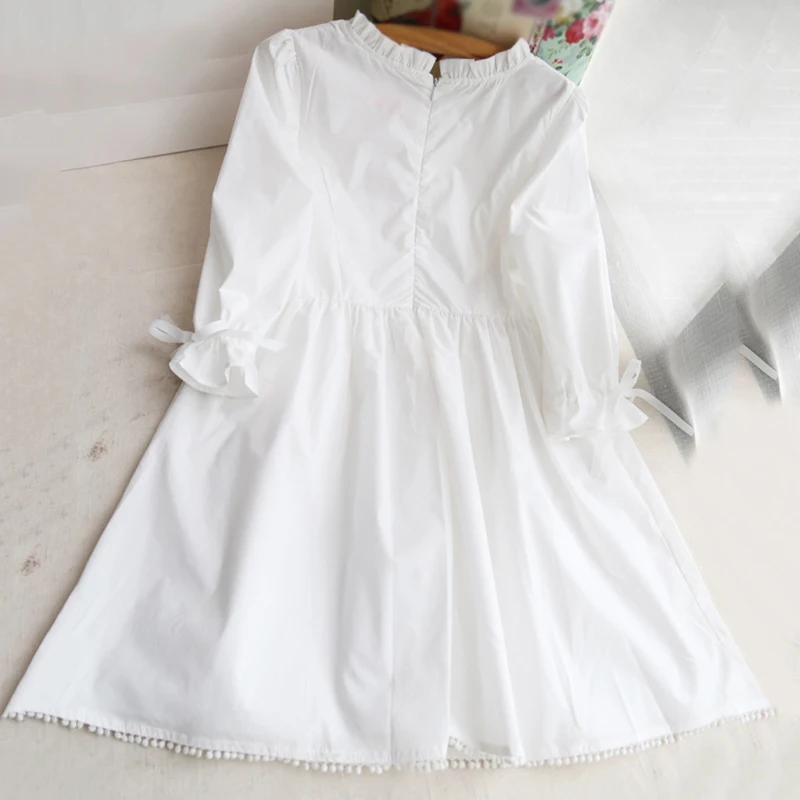 * Описание товара: весеннее милое кружевное платье для девочек; Милая белая юбка с круглым вырезом и длинными рукавами