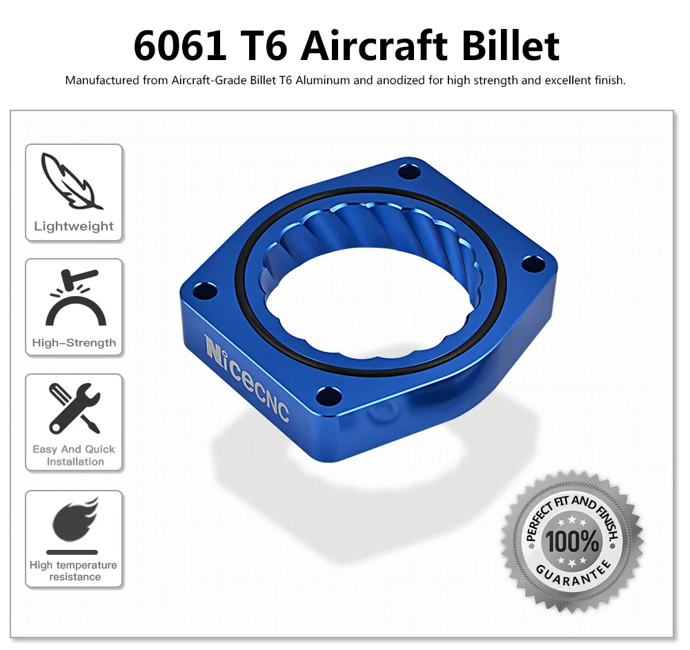 --- Наши прокладки для дроссельной заслонки выполнены с ЧПУ из авиационного 6061-T6 алюминиевая заготовка для легкого, высокопрочного и идеального прилегания и отделки.