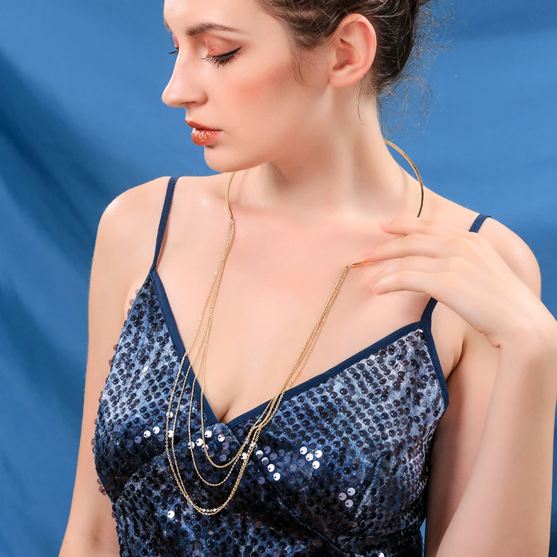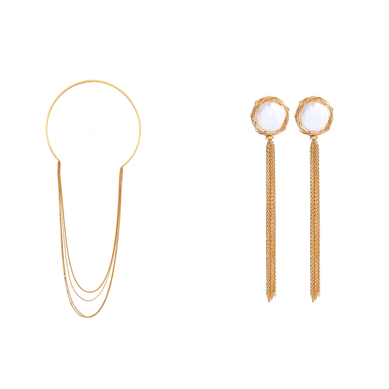 Женские серьги из сплава золотого цвета с бахромой, минимализм, колье с бахромой, модные ювелирные наборы