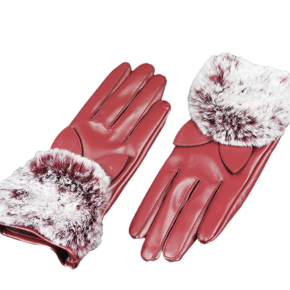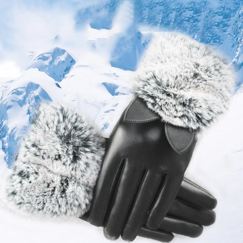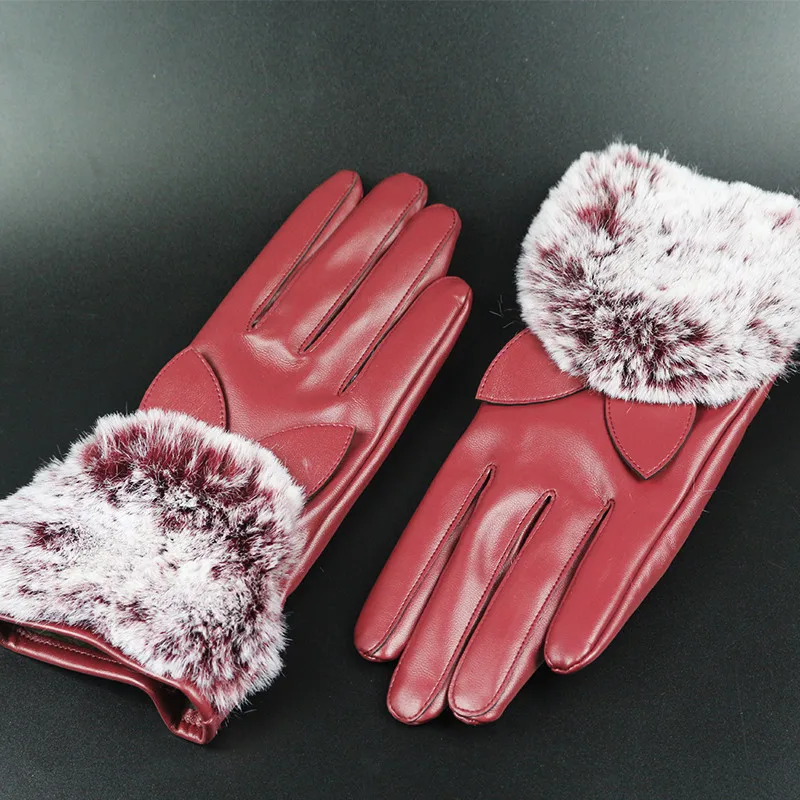 1 Для женщин кожаные перчатки на осень С настоящим мехомТеплые перчатки из кроличьего меха