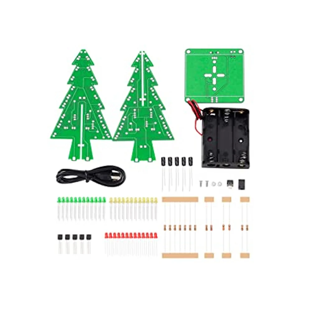 # 3D набор для пайки рождественской елки DIY предназначен для улучшения электронных знаний пользователей и навыков пайки. Идеально подходит для школьных проектов базовой электроники, ASP (после школьной программы) и STEM образования. Вам понадобится набор паяльных инструментов (не входят в комплект), таких как электрический утюг, паяльная проволока и так далее, для завершения процесса сборки и пайки. # Набор для припоя станет красивым мигающим рождественским деревом, когда соберется в комплекте. 36 шт/партия, в наличии 7 цветов светодиодный диоды для подавления переходных скачков напряжения сделает яркой, красочные и замечательный светильник в темное время суток. Не только для практики, дерево также может быть креативным подарком и приятным украшением, особенно на Рождество. # Название компонентов хорошо обозначено на печатной плате, так что вы можете легко найти, где компонент должен разместить. # DC 4,5 V-5V рабочее напряжение может быть приведенный в действие используются 3 батареи типа АА или USB адаптер питания напрямую (поставляется с держателем батареи и usb-кабелем). Размеры готового Дерево: 60x60x13 6 мм/2,36 "x 2,36" x 5,35 " (L * W * H), вес 60g)/0,14 (кг) # Если некоторые светодиоды не имеют светильник, пожалуйста, убедитесь, что все компоненты находятся в правильном направлении и правильное место. Пожалуйста, проверьте, есть ли некоторые точки припоя в плохом соединении, что очень важно при тестировании. Свяжитесь с нашей службой поддержки, если у вас есть какие-либо вопросы. Мы ценим каждую покупку.