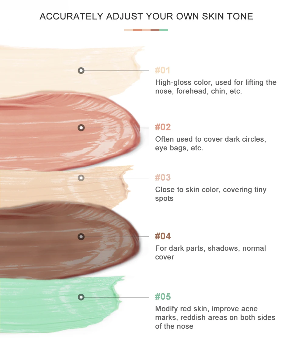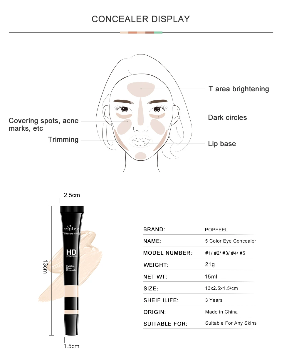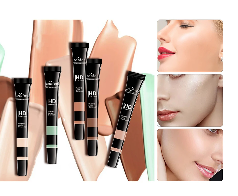 POPFEEL, 5 цветов, консилер для скрытия недостатков лица, покрытие акне, красный тональный крем, макияж для лица, основа, грунтовка, увлажняющий крем, красота