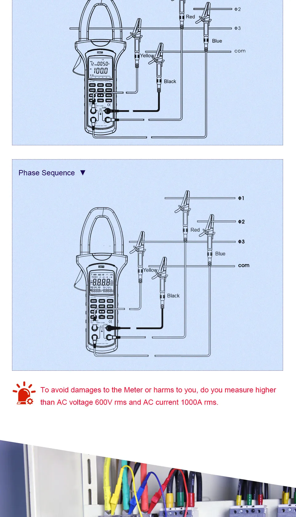 | Видимая мощность (VA) | 0.01kVA ~ 600kVA | ±(3% + 5) |
