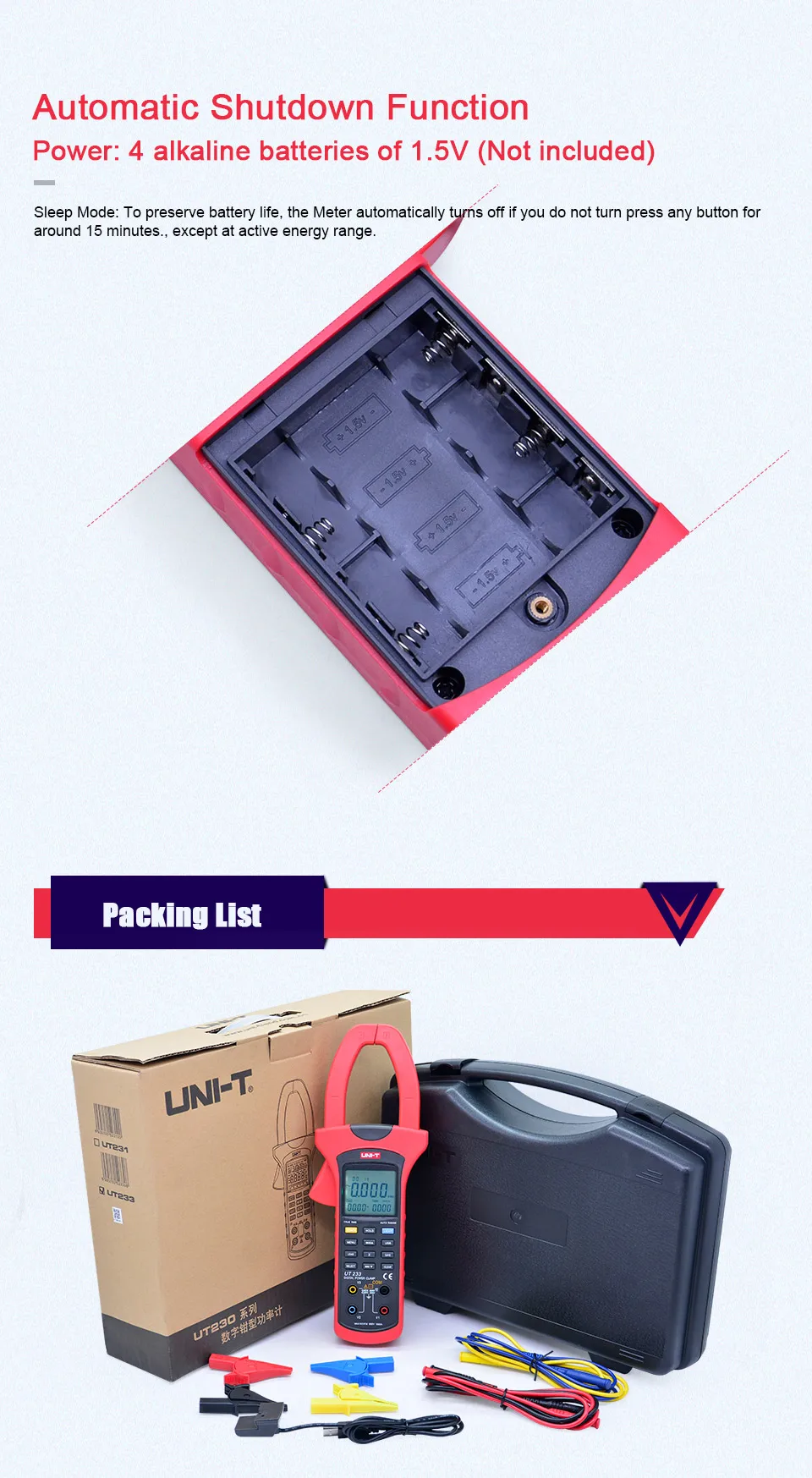 Измеритель мощности и гармоник UNI-T UT233 True RMS измеритель напряжения переменного тока/Активный/Видимый/реактивная мощность/проверка последовательности фаз