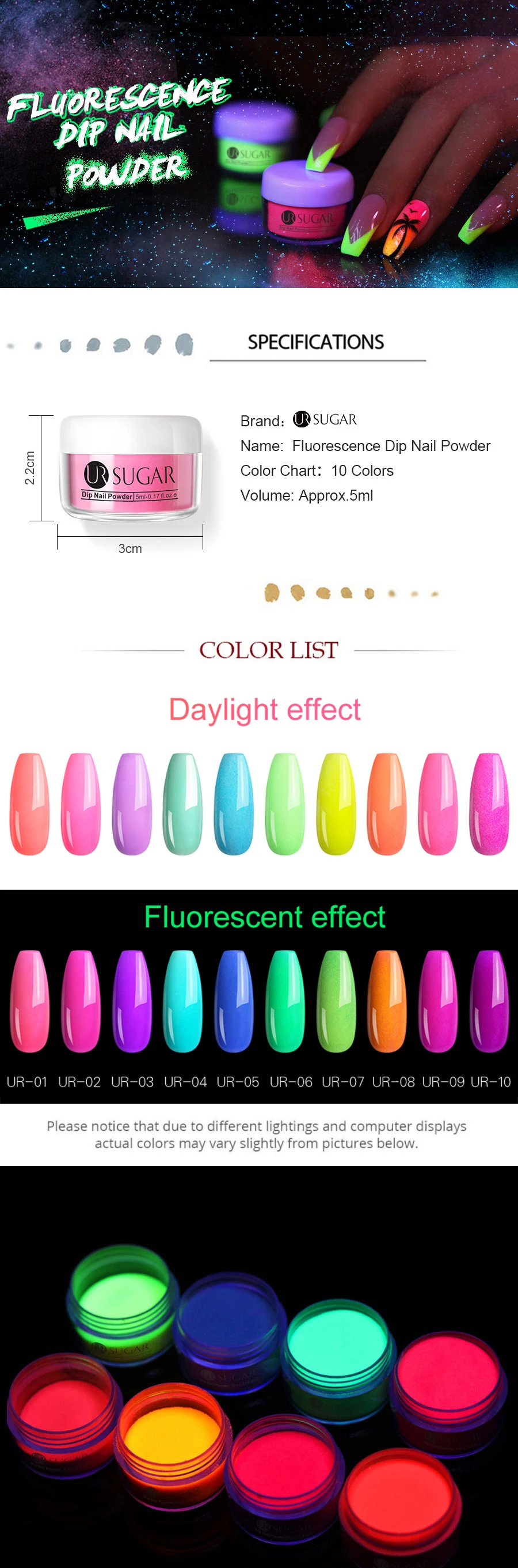 1 коробка 5 мл UR SUGAR Флуоресцентный порошок для ногтей